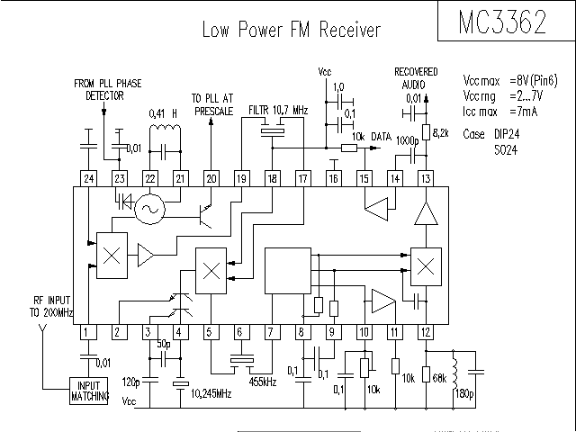 引脚1(VCO)为输入信号端,将输入信号交流耦合到本引脚,其输入信号频率应小于30MHz。